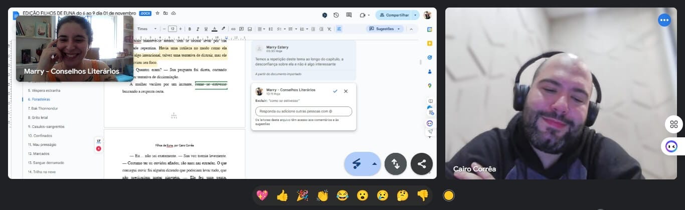 Uma análise profunda feita por mim ou pela Equipe Conselhos Literários, que inclui três camadas: dinâmica, criativa e crítica. Você recebe apontamentos sobre problemas, potencial de mercado, pontos fortes e sugestões criativas de melhoria.