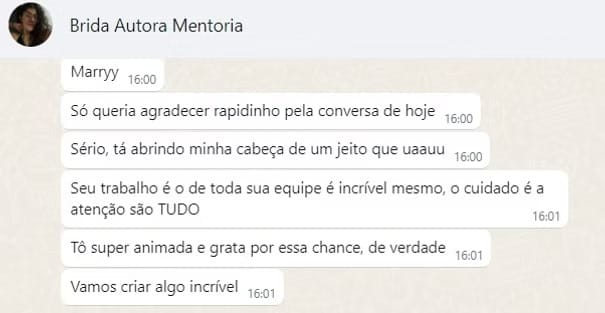 Criar algo – não importa o formato que escolha para apresentar a sua narrativa – é como dar à luz um filho. Assim como toda criança precisa de um guia para crescer e prosperar, sua obra também precisará de alguém para orientá-la, ajustá-la e desenvolvê-la de forma sólida. Com a minha mentoria, você terá o apoio para refinar e lapidar sua ideia até que ela se torne algo grandioso. Mas, é claro, também vou desafiar você a sair da zona de conforto, sempre com transparência, honestidade e uma boa dose de motivação, para que você não desista na primeira dificuldade.